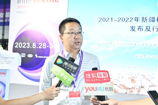 活動(dòng)最后,為進(jìn)一步了解新疆紡織服裝行業(yè)的發(fā)展成果和未來(lái)發(fā)展規(guī)劃,現(xiàn)場(chǎng)記者還對(duì)新疆維吾爾自治區(qū)棉花產(chǎn)業(yè)發(fā)展領(lǐng)導(dǎo)小組辦公室處長(zhǎng)王純武、新疆紡織服裝行業(yè)協(xié)會(huì)會(huì)長(zhǎng)何立軍、新疆溢達(dá)紡織有限公司副總經(jīng)理單斐、新疆華孚紡織有限公司工會(huì)主席熊旭鋒進(jìn)行了專訪。