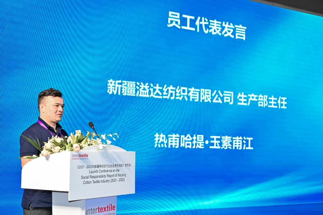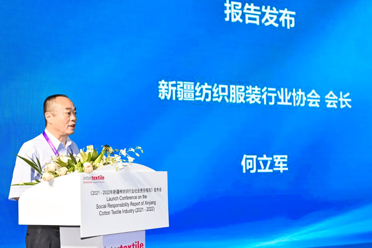 為向全世界的服裝品牌、消費(fèi)者、非政府組織等各利益相關(guān)方,展現(xiàn)新疆棉紡織行業(yè)真實(shí)、立體、全面的行業(yè)面貌和可持續(xù)發(fā)展實(shí)踐,新疆紡織服裝行業(yè)協(xié)會(huì)會(huì)長(zhǎng)何立軍現(xiàn)場(chǎng)發(fā)布了《2021-2022年新疆棉紡織行業(yè)社會(huì)責(zé)任報(bào)告》。該報(bào)告以國(guó)際化視角講好“新疆棉紡織行業(yè)故事”為主線,從“行業(yè)發(fā)展現(xiàn)狀、筑牢民生保障、促進(jìn)共同繁榮、護(hù)佑綠水青山、彰顯全球價(jià)值、行業(yè)發(fā)展前景與展望”六個(gè)章節(jié),梳理了新疆棉紡織行業(yè)的發(fā)展成果、企業(yè)運(yùn)營(yíng)的責(zé)任績(jī)效、行業(yè)長(zhǎng)期發(fā)展戰(zhàn)略以及不斷優(yōu)化提升的履責(zé)實(shí)踐等,對(duì)增進(jìn)國(guó)際社會(huì)對(duì)新疆棉紡織行業(yè)的了解與信任,深化國(guó)際供應(yīng)鏈合作共贏提供了重要支撐。