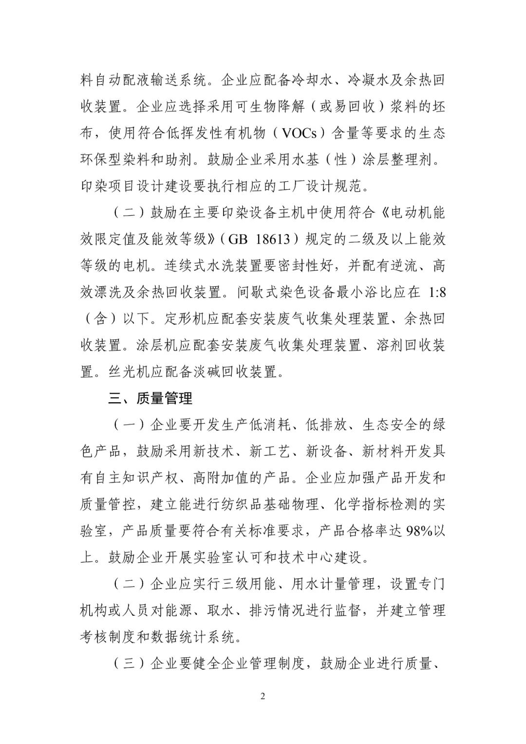 為全面貫徹黨的二十大精神,加快推進(jìn)新型工業(yè)化,更好發(fā)揮規(guī)范條件引領(lǐng)技術(shù)進(jìn)步、推動(dòng)綠色發(fā)展、促進(jìn)轉(zhuǎn)型升級的作用,工業(yè)和信息化部對《印染行業(yè)規(guī)范條件(2017版)》及《印染企業(yè)規(guī)范公告管理暫行辦法》進(jìn)行了修訂,形成了