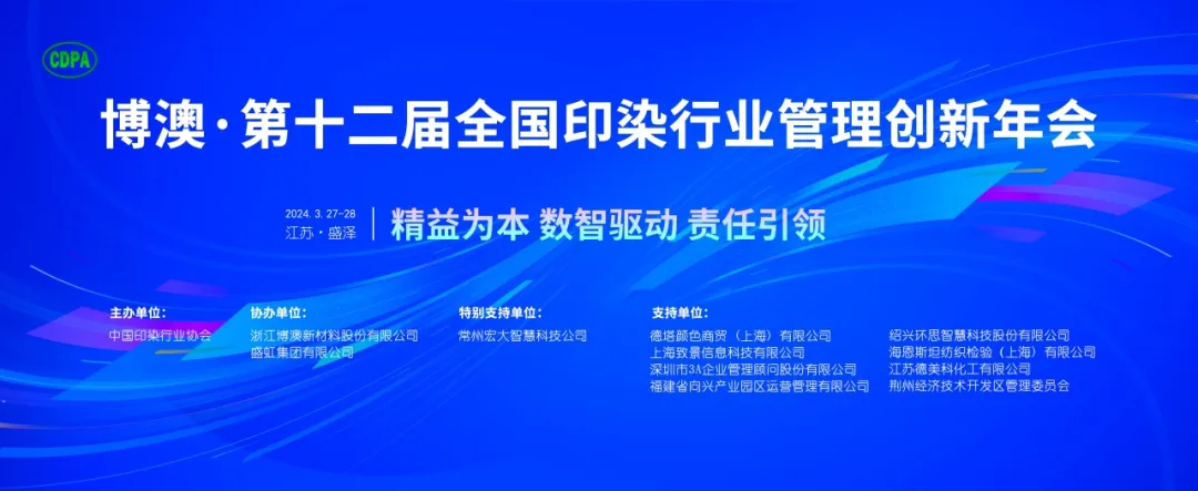 3月27日,博澳·第十二屆全國印染行業(yè)管理創(chuàng)新年會在江蘇省盛澤鎮(zhèn)成功召開。大會以“精益為本 數(shù)智驅(qū)動 責(zé)任引領(lǐng)”為主題,圍繞精益生產(chǎn)管理、數(shù)字化智能化管理、可持續(xù)性未來構(gòu)建等議題進(jìn)行經(jīng)驗(yàn)交流。