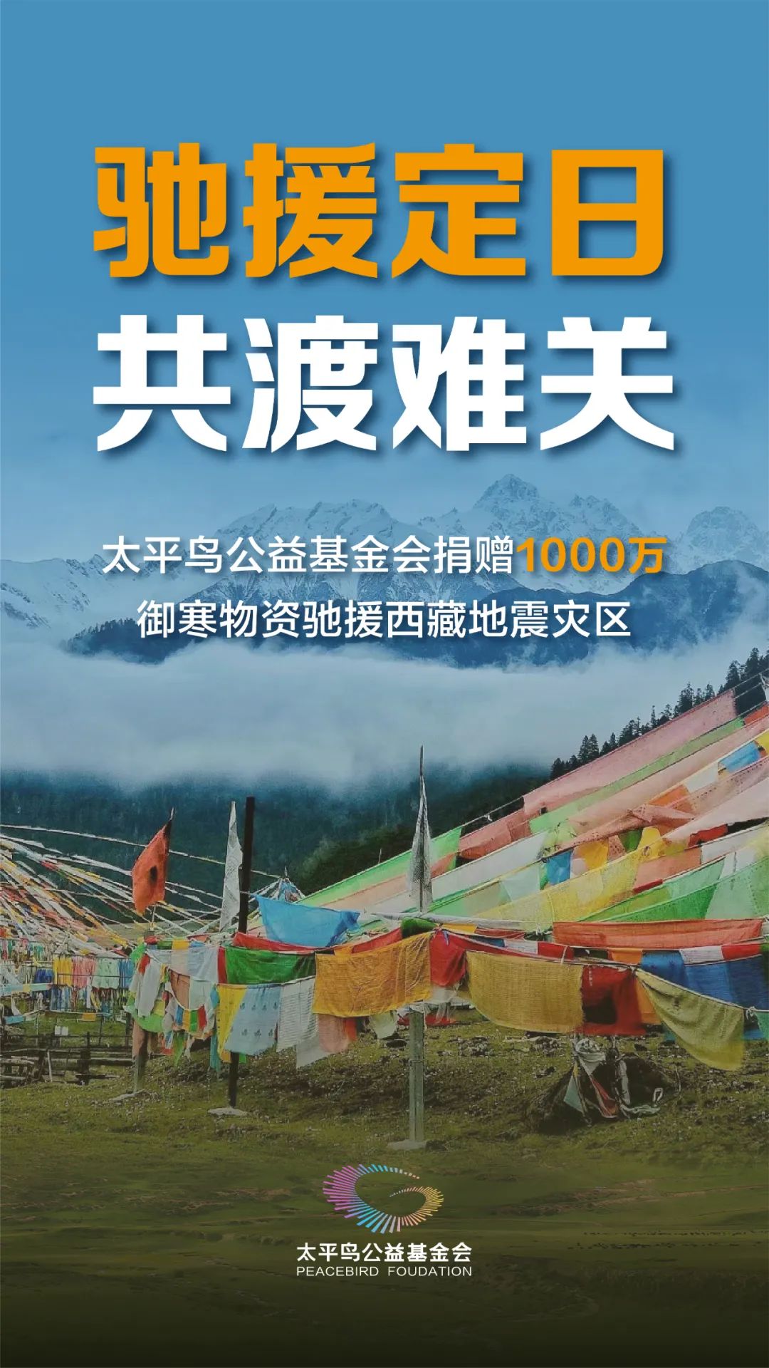 太平鳥公益基金會迅速啟動救災響應,緊急調度、籌措捐贈1000萬元御寒物資馳援震區。太平鳥將持續關注災情進展,全力支持救援相關工作。