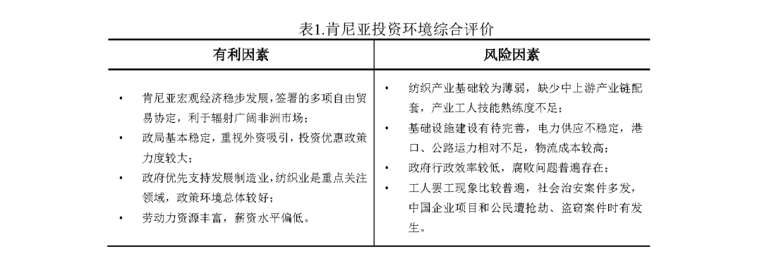 (5)肯尼亞尚未形成完整的紡織產業鏈,但因在勞動力成本、國際貿易環境以及投資政策扶持等方面具有優勢,軋棉、織造、服裝加工等細分領域有機會成為中國與肯尼亞紡織產業貿易投資合作的主要方向。企業可結合海外主銷市場情況,以服裝加工為中心赴肯投資,也可適當向中上游環節延伸產業鏈,但需注意因紡織原料及配套產品依賴進口導致的物流周期及成本等問題。