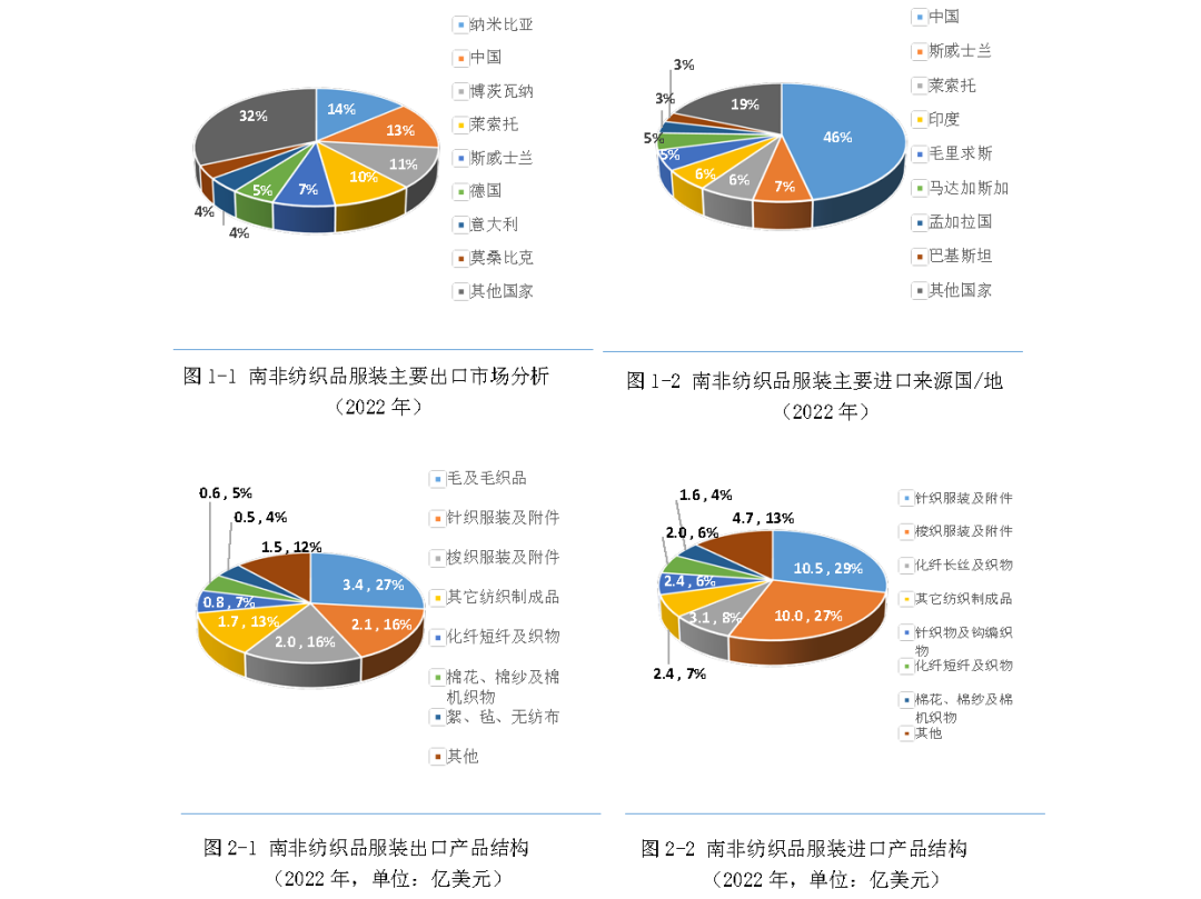 (3)目前,南非國內紡織服裝產能仍顯不足,半數以上的紡織品服裝從國際市場采購。中國是南非最大的紡織品服裝進口來源國,中國—南非“經認證的經營者”(AEO)互認于2023年9月1日正式實施,兩國在貿易往來上享受通關便利。