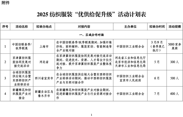附件:2025紡織服裝“優供給促升級”活動計劃表