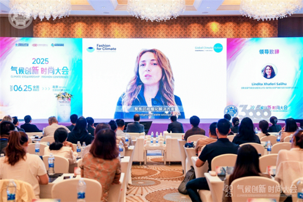 《聯合國氣候變化框架公約》秘書處全球氣候行動行業參與負責人林迪塔(Lindita Xhaferi Salihu)為大會做視頻致辭。她在視頻中肯定了中國紡聯CNTAC在全球產業鏈氣候轉型中的重要作用,并呼吁全球協作實現《時尚產業氣候行動憲章》目標。
