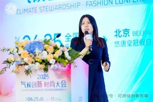 李寧公司環境與可持續發展總監劉維以《李寧公司全鏈路推進氣候轉型》為題,介紹了李寧從產品設計到供應鏈的可持續實踐。其‘源于自然、自然而染、自然新生、回歸自然’的全鏈路體系,廣泛涵蓋了生物基材料的應用、實現了無水染色技術(每件節省40升水)、推出了再生紗線產品(已回收1.9億個塑料瓶)以及降解鞋的研發(土壤中降解率高達80%)。運營方面,李寧北京總部通過光伏覆蓋實現了四分之一的用電量自給自足,并成功獲得碳中和認證;上海低碳門店則每年減少碳排放3.5噸。此外,到2024年,李寧已收集了90%供應商的碳排放數據,并成功推動十家供應商設定了20%的減排目標。