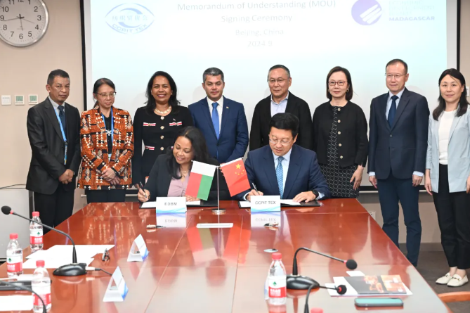 2024年9月5日,中國國際貿易促進委員會紡織行業分會和馬達加斯加經濟發展局簽署合作備忘錄儀式在北京舉行。