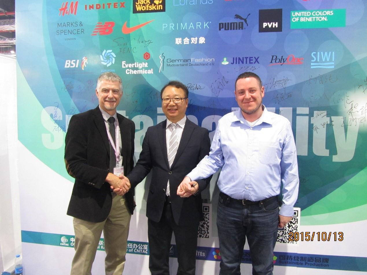行業(yè)領(lǐng)導(dǎo)在了解“科技創(chuàng)新社會(huì)責(zé)任”主題后與ZDHC全球技術(shù)總監(jiān)Scott Echols,C&A全球可持續(xù)化學(xué)采購(gòu)負(fù)責(zé)人Adam及Adidas,ZARA等國(guó)際品牌代表一起簽名,為行業(yè)點(diǎn)贊綠色制造。