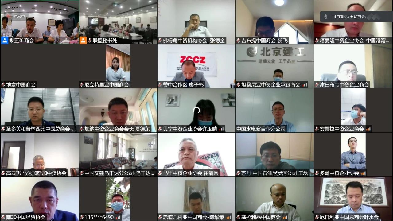 首屆理事會會議由聯盟秘書處(中國五礦化工進出口商會)組織籌辦,線上、線下方式召開。聯盟首屆理事會由在非洲的49個中資企業商協會和代表性企業組成,代表1700多家在非企業,理事單位代表視頻連線參會。中國機電產品進出口商會、中國對外承包工程商會、中國醫藥保健品進出口商會、中國紡織工業聯合會、國家林業和草原局林產品國際貿易研究中心、中國通信企業協會等單位的領導和專家作為聯盟發起單位代表出席了會議現場。商務部合作司領導應邀參加會議,并指導工作。