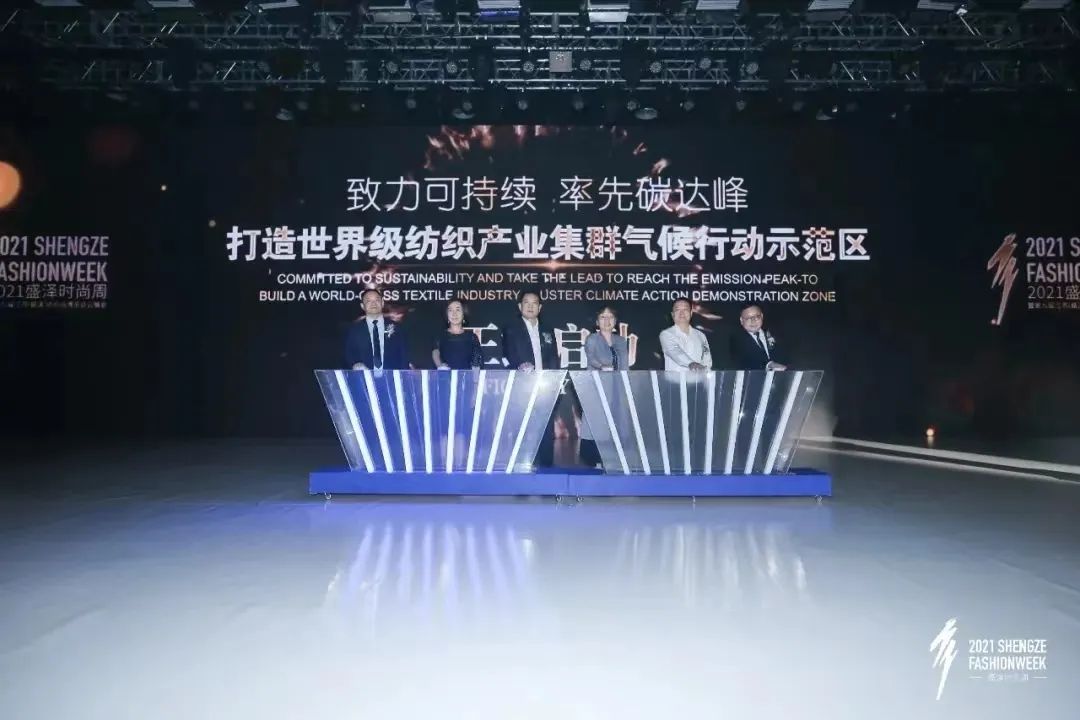 為了響應(yīng)習(xí)近平主席2021年4月關(guān)于加速開展碳達峰、碳中和行動的指示,擁有從原材料到終端品牌完整產(chǎn)業(yè)生態(tài)的盛澤積極響應(yīng)中國30·60雙碳目標(biāo),于2021年6月16日盛澤時尚周暨第九屆江蘇(盛澤)紡織品博覽會云展會開幕式上正式發(fā)布了“盛澤紡織產(chǎn)業(yè)集群碳中和愿景”,同時宣布加入中國紡織工業(yè)聯(lián)合會“氣候創(chuàng)新2030行動”。