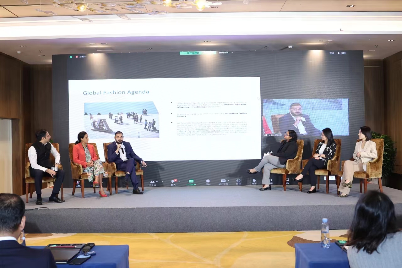 2023年,《聯(lián)合國(guó)可持續(xù)發(fā)展議程》已過(guò)半程,但是在氣候?yàn)?zāi)害、地緣沖突、經(jīng)濟(jì)衰退和COVID-19冠狀病毒病持續(xù)影響的疊加作用下,全球發(fā)展面臨嚴(yán)峻挑戰(zhàn);2023年也是中國(guó)政府“一帶一路”倡議提出10周年的重要里程碑,倡議在推進(jìn)綠色發(fā)展方面取得了重大進(jìn)展,為全球應(yīng)對(duì)氣候變化貢獻(xiàn)力量。全球發(fā)展進(jìn)入到以環(huán)境可持續(xù)性為核心的新方向,但也凸顯了國(guó)際合作和嚴(yán)格環(huán)境治理的必要性。在“促進(jìn)可持續(xù)循環(huán)”的第二場(chǎng)分論壇環(huán)節(jié),來(lái)自聯(lián)合國(guó)環(huán)境規(guī)劃署駐華代表處項(xiàng)目規(guī)劃主任王茜女士、丹麥全球時(shí)尚議程影響力項(xiàng)目經(jīng)理Shamiul Hoque、印度Kakkar 紡紗廠營(yíng)銷和公共關(guān)系主管Harshit Kakkar、孟加拉Shasha 服裝有限公司經(jīng)理、EOS紡紗有限公司經(jīng)理、孟加拉國(guó)服裝制造商和出口商協(xié)會(huì)可持續(xù)和循環(huán)性常設(shè)委員會(huì)主席Nishat Hamid、澳大利亞ANVARTA 咨詢公司總監(jiān)Mayuri Wijayasundara 博士、瑞典H&M 利益相關(guān)者和公共事務(wù)副總裁Erin Xu等嘉賓,一起分享了歐盟政策對(duì)循環(huán)型供應(yīng)鏈的影響,倡議建立循環(huán)伙伴關(guān)系,鼓勵(lì)制造商、品牌商、回收商和利益相關(guān)方在這一進(jìn)程中共擔(dān)責(zé)任和共享經(jīng)驗(yàn),以推動(dòng)紡織品價(jià)值鏈向更循環(huán)的生產(chǎn)方式轉(zhuǎn)變。