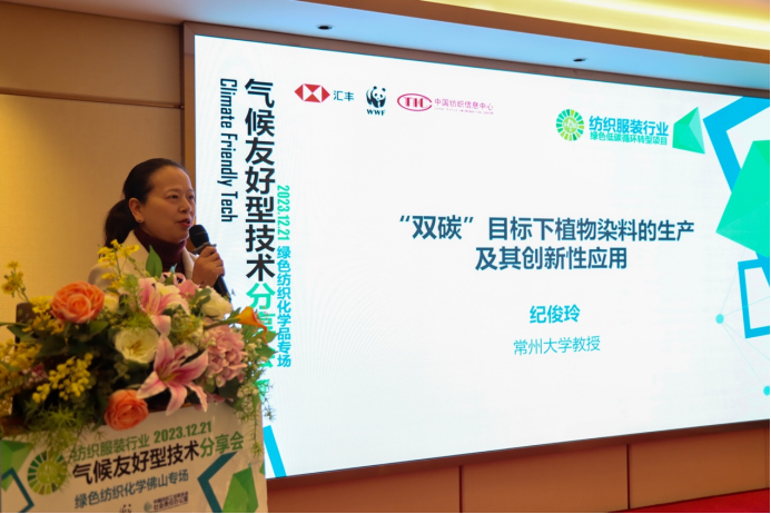 紀(jì)俊玲教授分享了關(guān)于雙碳目標(biāo)下植物染料的生產(chǎn)及其創(chuàng)新性應(yīng)用的研究。她強(qiáng)調(diào)了植物染料在實(shí)現(xiàn)碳中和和綠色經(jīng)濟(jì)中的重要作用,特別是在服裝紡織產(chǎn)業(yè)的應(yīng)用。她詳細(xì)探討了植物染料的定義、生產(chǎn)關(guān)鍵技術(shù)、以及其在紡織品中的創(chuàng)新性應(yīng)用。紀(jì)教授的演講展示了植物染料作為一種可持續(xù)、環(huán)保的染色選項(xiàng)在紡織行業(yè)中的潛力及其對(duì)傳統(tǒng)染色技術(shù)的挑戰(zhàn)。