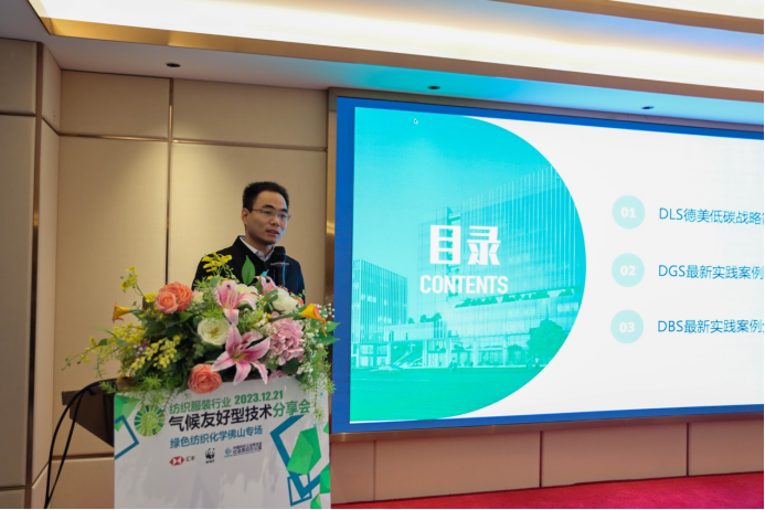 楊之卓先生重點(diǎn)介紹了德美的短流程及生物基低碳染整解決方案。該方案聚焦于紡織行業(yè)的綠色、低碳轉(zhuǎn)型,提出創(chuàng)新的生產(chǎn)制造過(guò)程,以降低能耗、減少污染,并推廣可持續(xù)的原材料使用。并突出了該方案在節(jié)能減排、提升效率方面的優(yōu)勢(shì),旨在為全球紡織行業(yè)供應(yīng)鏈提供可復(fù)制的運(yùn)用案例,推動(dòng)整個(gè)行業(yè)的環(huán)境友好轉(zhuǎn)型。