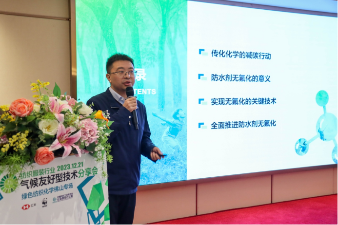 2023年12月21日,由中國(guó)紡織工業(yè)聯(lián)合會(huì)社會(huì)責(zé)任辦公室、中國(guó)紡織工業(yè)聯(lián)合會(huì)科技發(fā)展部聯(lián)合主辦的氣候友好型技術(shù)分享會(huì)-綠色紡織化學(xué)品專(zhuān)場(chǎng)在佛山西樵成功舉辦。會(huì)議由匯豐銀行(中國(guó))和世界自然基金會(huì)(瑞士)北京代表處支持,中國(guó)紡織信息中心、中聯(lián)品檢(佛山)檢驗(yàn)技術(shù)有限公司承辦。