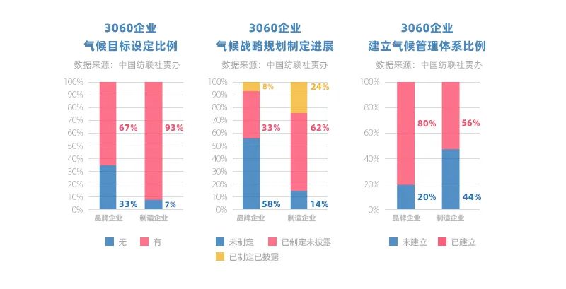 截至2023年9月,已有21家品牌企業(yè)、42家制造企業(yè)和3個重點紡織集群加入“30·60碳中和加速計劃”,企業(yè)以組織層級的雙碳戰(zhàn)略方案制定和產(chǎn)品層級的碳足跡測評為抓手,穩(wěn)步推進相關(guān)工作,用實際行動踐行氣候承諾。