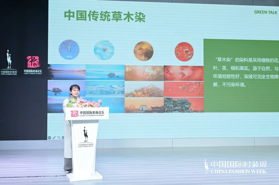 來自北京服裝學院的孫雪飛教授提出:“設計師的角色十分重要,是鏈接產業上下游的中間環節。” 她強調了可持續設計的重要性,提出了將中國傳統智慧與現代可持續實踐相結合的觀點。孫教授介紹了一些古老概念,例如中國的“天人合一”理念和傳統草木染技術。提出了可持續設計的實踐方法,例如使用循環再生材料、傳統手工藝、關注和保護少數民族文化多樣性,以及通過設計創新來減少紡織廢物。孫雪飛教授展示了多種可持續設計策略,如零浪費設計、升級再造、一衣多穿、和重構,目的是在整個紡織服裝產業鏈中實現可持續性,包括使用循環再生材料、傳統手工藝、保護少數民族文化多樣性,以及通過設計創新來減少紡織廢物,并強調了可持續設計在未來時尚產業中的重要性。