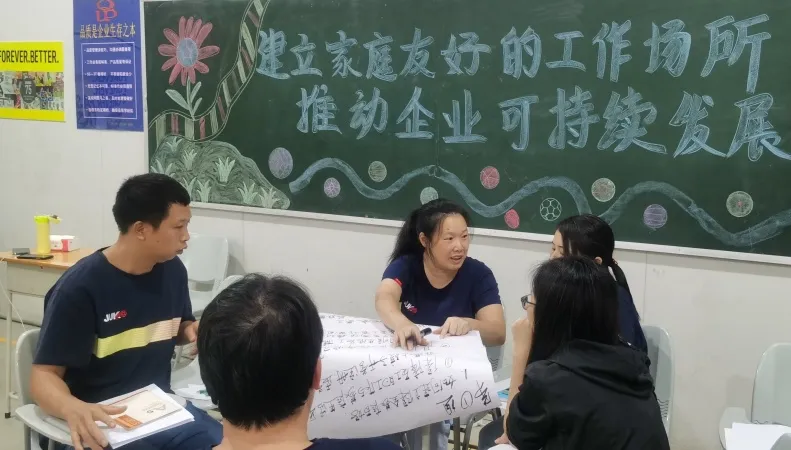 2023年9月,高州榮成在PUMA (彪馬) 的支持下正式加入FFF試點(diǎn)項(xiàng)目,并在中國(guó)紡聯(lián)社會(huì)責(zé)任辦公室FFF專家團(tuán)隊(duì)指導(dǎo)下完成了初評(píng),根據(jù)FFF專家團(tuán)隊(duì)初評(píng)建議,進(jìn)一步規(guī)范企業(yè)FFF相關(guān)制度管理,著手制定“促進(jìn)員工家庭友好”的整體工作規(guī)劃;2023年11月,企業(yè)參加了由中國(guó)紡聯(lián)社會(huì)責(zé)任辦公室FFF專家團(tuán)隊(duì)組織的為期兩日FFF專題培訓(xùn);同年12月,企業(yè)完成FFF相關(guān)制度文件修訂;2024年1月,企業(yè)正式發(fā)布《家庭友好企業(yè)政策》;隨后,企業(yè)陸續(xù)開(kāi)展內(nèi)部培訓(xùn),開(kāi)展政策宣導(dǎo),并充分利用外界資源開(kāi)展培訓(xùn),例如邀請(qǐng)當(dāng)?shù)貗D聯(lián)專家開(kāi)展了全員反家暴培訓(xùn);并創(chuàng)立企業(yè)婦女聯(lián)合會(huì),成立婦聯(lián)工作室等。