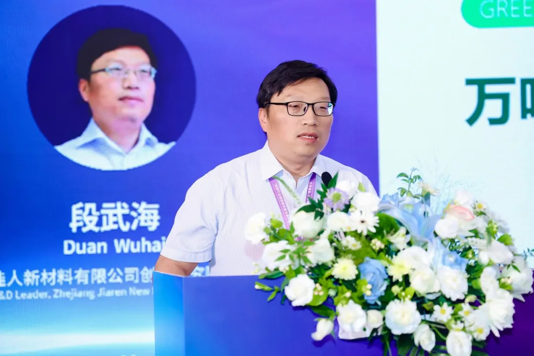 “塑料污染、氣候變化、生物多樣性是全球三大公共環境問題。在紡織行業,材料化利用率不足3%,廢舊紡織品的循環再生市場潛力巨大。”浙江佳人新材料有限公司創新研究院負責人段武海以《萬噸級廢舊紡織品高值化應用 助力低碳發展》為題,結合企業發展進行了分享。他介紹,佳人采用分子級循環再生技術不僅實現了廢舊聚酯再生高值化應用,與原生材料相比,還可實現60%-70%碳減排。目前佳人已實現首家化學法再生萬噸級量產,并在國內首推“T2T”循環,以此來更大程度地阻止新的化石能源進入供應鏈。