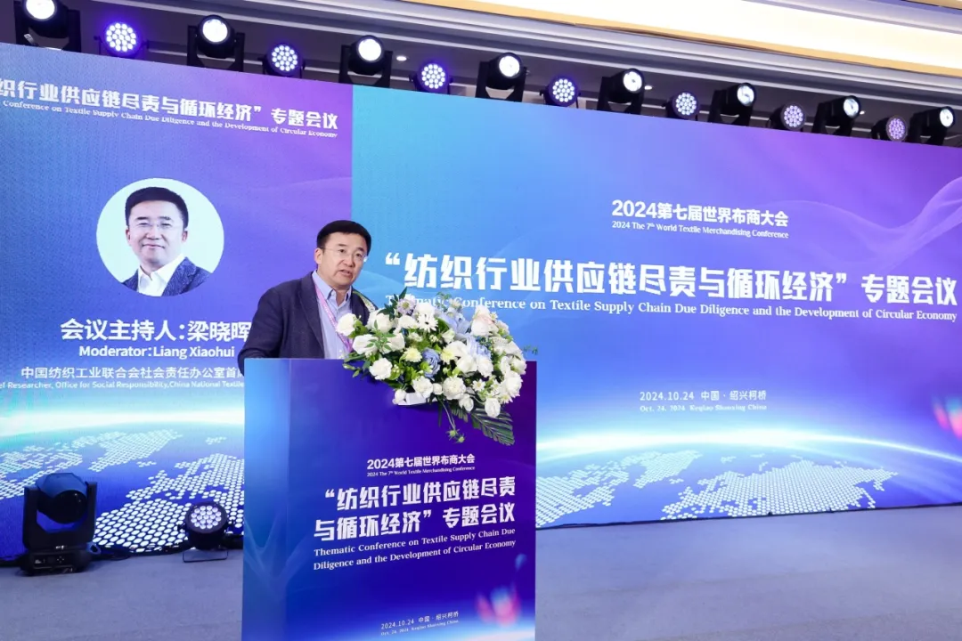 中國紡織工業聯合會社會責任辦公室首席研究員梁曉暉主持會議。他表示,循環經濟拓展了紡織服裝行業的供應鏈,從前道的原材料、生產端到中道的流通端以及到后道的消費端都發生了從業者與合作形態的各種變化,這也為紡織服裝行業推動更加負責任、可持續的循環經濟帶來新的機遇和挑戰。