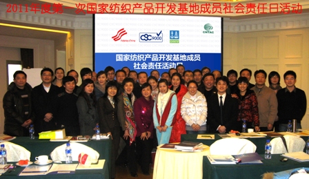 2011年1月5日,國家紡織產品開發基地秘書處聯合中國紡織工業協會社會責任辦公室、挪威船級社DNV共同舉辦了首期“國家紡織產品開發基地企業社會責任活動日”活動,來自近24家國家紡織產品開發基地企業的