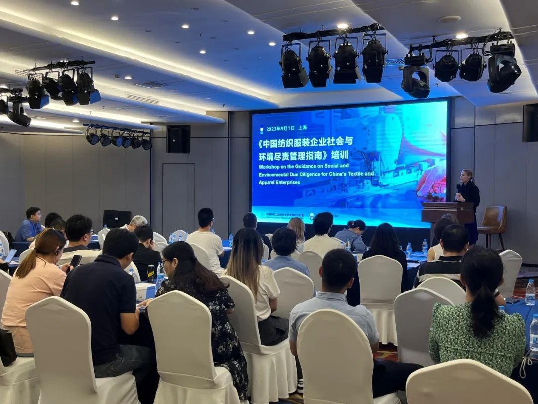 2023年9月1日,中國紡織工業聯合會社會責任辦公室與瑞典駐華大使館在上海聯合舉辦《中國紡織服裝企業社會和環境盡責管理指南》培訓會。