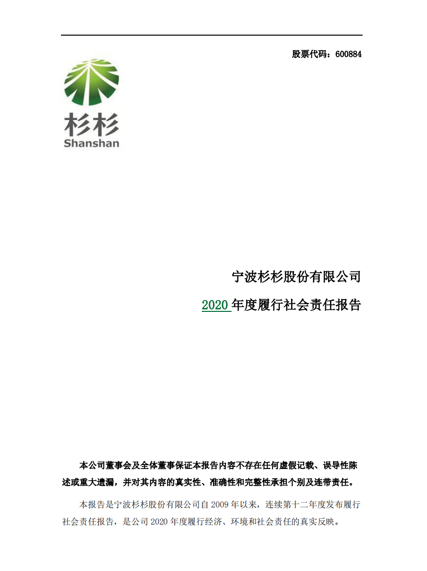寧波杉杉股份有限公司2020年度履行社會責任報告