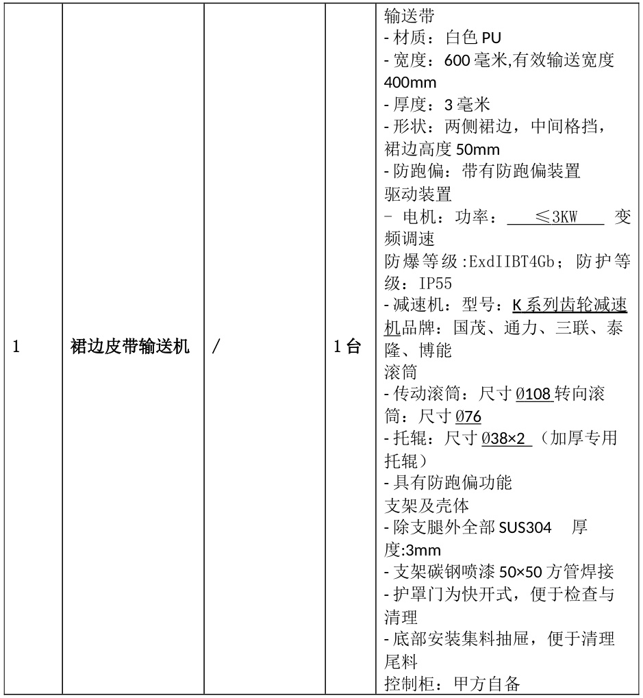 3. 驅動配置:變頻調速電機(≤4kW),防爆等級ExdIIBT4Gb,IP55防護