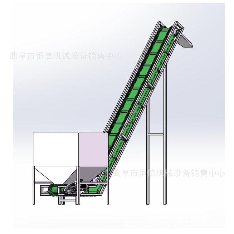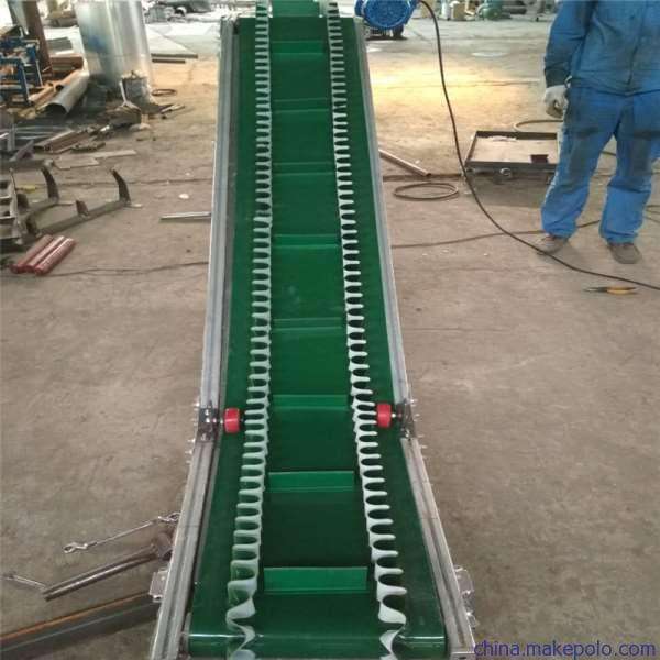 3、Z型帶式輸送機具有波紋壁,同時皮帶上設計了橫向隔板,周邊的裙邊設計,在輸送過程時不易散落物料。